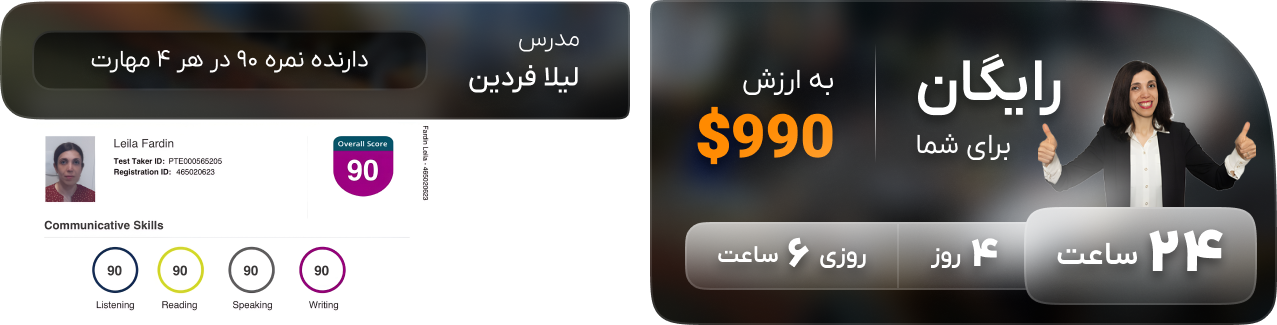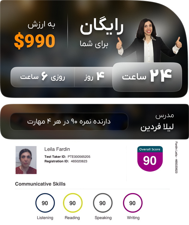 دارنده نمره ۹۰ در هر چهار مهارت آزمون PTE