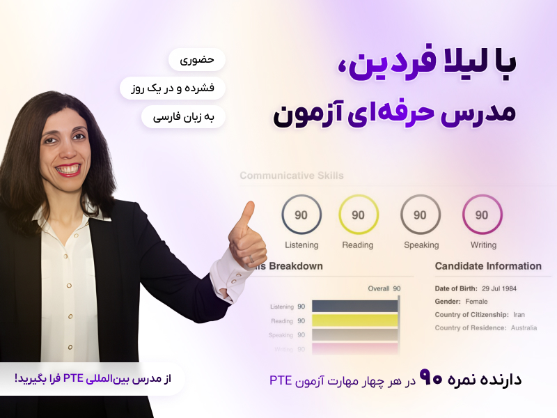 دارنده نمره ۹۰ در هر چهار مهارت آزمون PTE